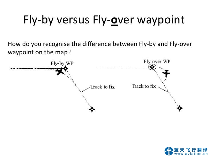 To inform flight crews of an erroneous distance to waypoint anomaly and subsequent fly-over instead of fly-by waypoint in the route. 出自757FCOM fly-over必須得經過航路點上空,可以翻為“飛越” fly-by不經過航路點上空,可以翻為“從航路點旁飛過” ![]() Fly-by 與 Fly-over ![]() Fly-by versus Fly-over waypoint |